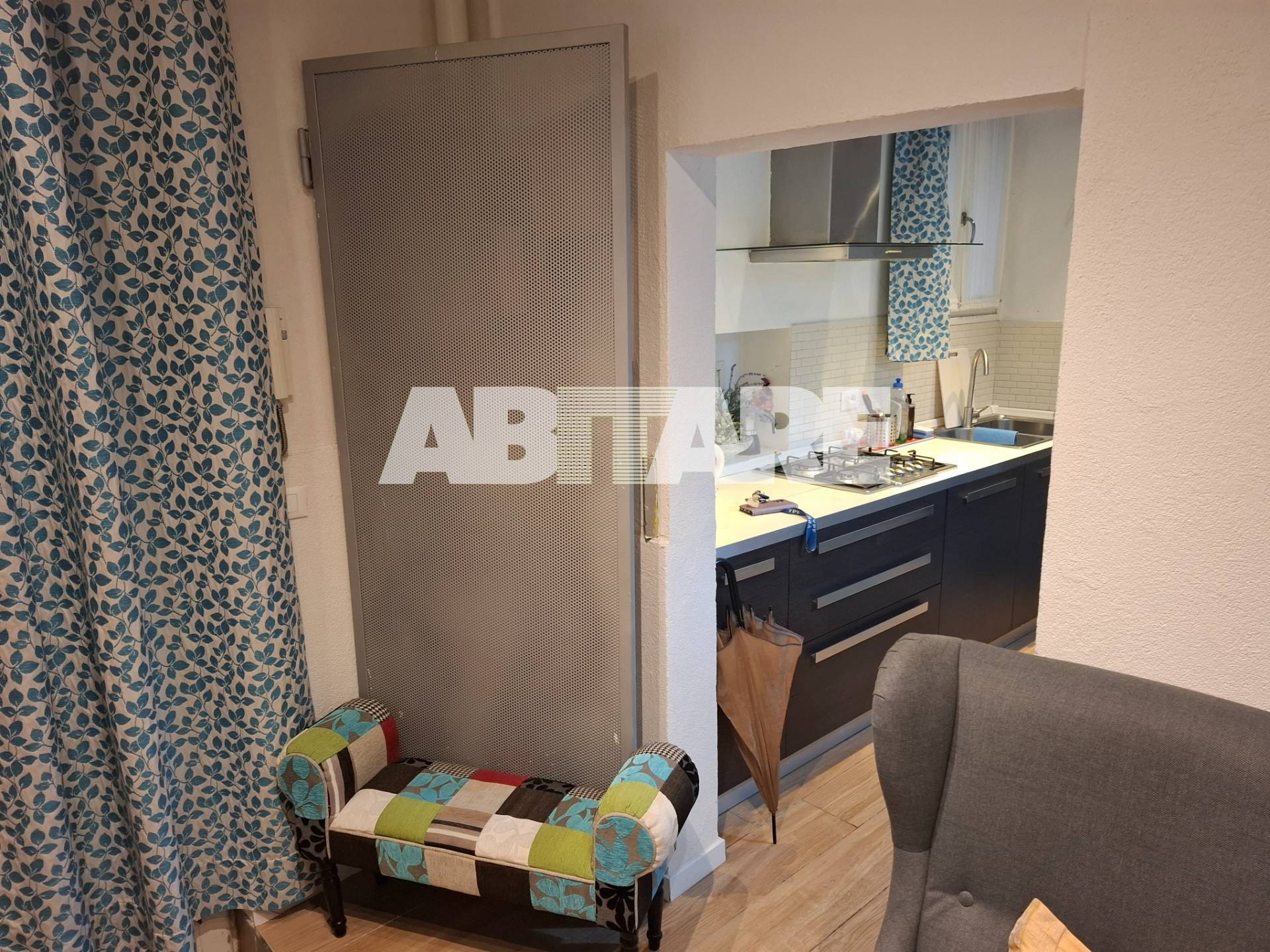 L'ingresso si apre su un soggiorno con cucina a vista, perfetto per momenti di convivialità e relax.